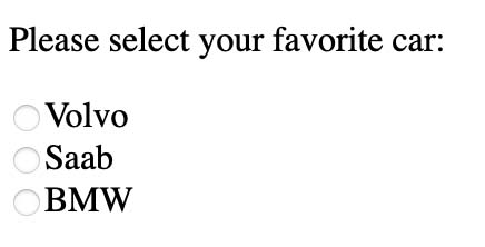 <input type="radio" name="cars"