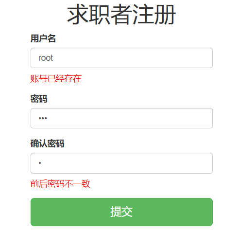 利用ajax检测账号是否重复,以及利用js检测前后密码是否一致
