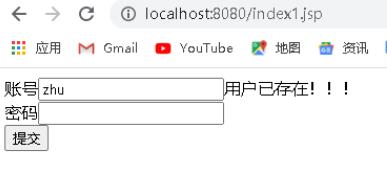 $("#show").html("用户已存在!!!")