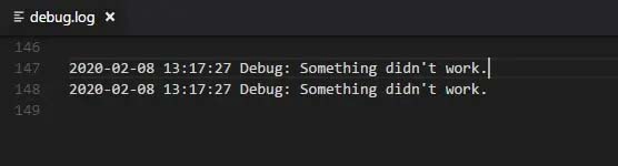 log::write('debug',"something didn't work.");