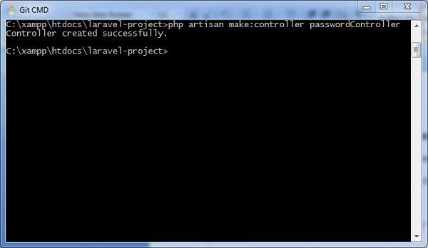 以下屏幕截图显示了如何创建一个名为 passwordcontroller 的控制器,用于存储和更新密码 -